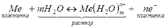 В том случае, когда концентрация катионов металла в растворе велика или металл малоактивный, равновесие указанного процесса сдвигается влево и металлическая пластинка заряжается положительно:
