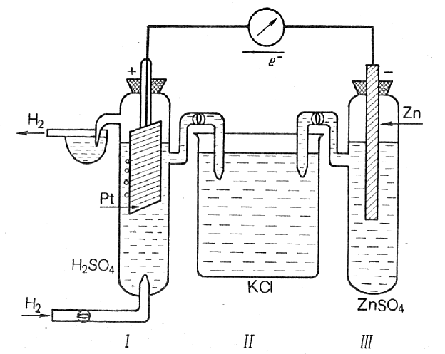 I – водородный электрод, II – солевой мостик, III – измеряемый электрод.