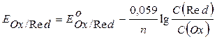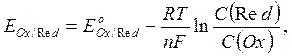 С(Red) и C(Ox) – молярные концентрации соответственно восстановленной и окисленной форм соединения.