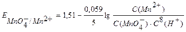 - соответственно электродный и стандартный потенциалы системы; R – универсальная газовая постоянная; Т – абсолютная температура; F – постоянная Фарадея; n – число электронов, участвующих в окислительно-восстановительном процессе.