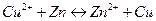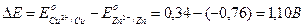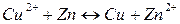 суммарный окислительно-восстановительный процесс самопроизвольно осуществляется при условии протекания восстановительной реакции только на медном электроде, а окислительной – на цинковом. Следовательно, в объединенном уравнении электродная реакция процесса с меньшим потенциалом записывается в обратном направлении, а процесса с большим потенциалом – в том виде, в каком она представлена в таблице, т.е. в форме процесса восстановления: