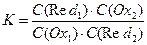 Отношение концентраций представляет собой выражение константы равновесия окислительно-восстановительного процесса: