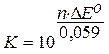 Применяя значение DЕо окислительно-восстановительной реакции, можно рассчитать ее константу равновесия. Для суммарного процесса типа