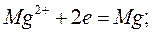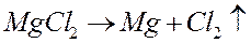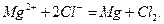 Mg2+ + 2e- = Mg 2Cl- - 2e- = Cl2