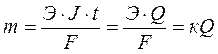 II. При пропускании одинакового количества электричества через растворы или расплавы различных элементов масса веществ, выделяющихся на электродах, пропорциональна молярным массам их эквивалентов.