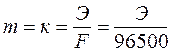 Величина К называется электрохимическим эквивалентом вещества. Она представляет собой массу вещества, окисляющегося или восстанавливающегося на электродах при прохождении через элемент 1 Кл электричества. Видно, что химический эквивалент связан с электрохимическим эквивалентом соотношением: