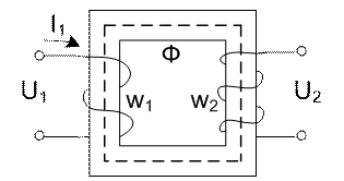 Принцип действия трансформатора: первичный ток I1 протекая через витки первичной обмотки W1, наводит в ней и сердечнике переменное магнитное поле, магнитный поток которого Ф пересекает витки вторичной обмотки W2 и наводит в них переменную ЭДС, возникает напряжение U2 и ток I2 через нагрузку Rн.