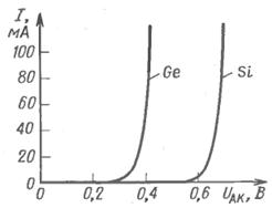 Рисунок 14 – ВАХ германиевого и кремниевого диодов