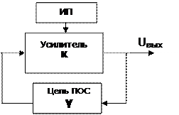 2) сигнал, проходя по цепи ПОС, ослабляется в К раз, а проходя через усилитель, увеличивается в К раз и приходит на выход усилителя с той же самой амплитудой. Это условие называют балансом амплитуд.