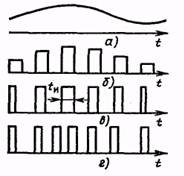 Существует множество способов передачи непрерывного сигнала (рис. 34, а) в виде прямоугольных импульсов (рис. 34,6 - г).