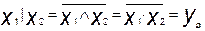 4) Функция Шеффера, обозначаемая символически вертикальной черточкой | (штрих Шеффера), отображает операцию И-НЕ. Для простейшей функции двух переменных х1 и х2 в этом случае получают