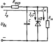 Схема параметрического стабилизатора приведена на рис. 88. Входное напряжение UBX распределяется между ограничивающим резистором Rогр и параллельно включенными стабилитроном VD и резистором нагрузки Rн.