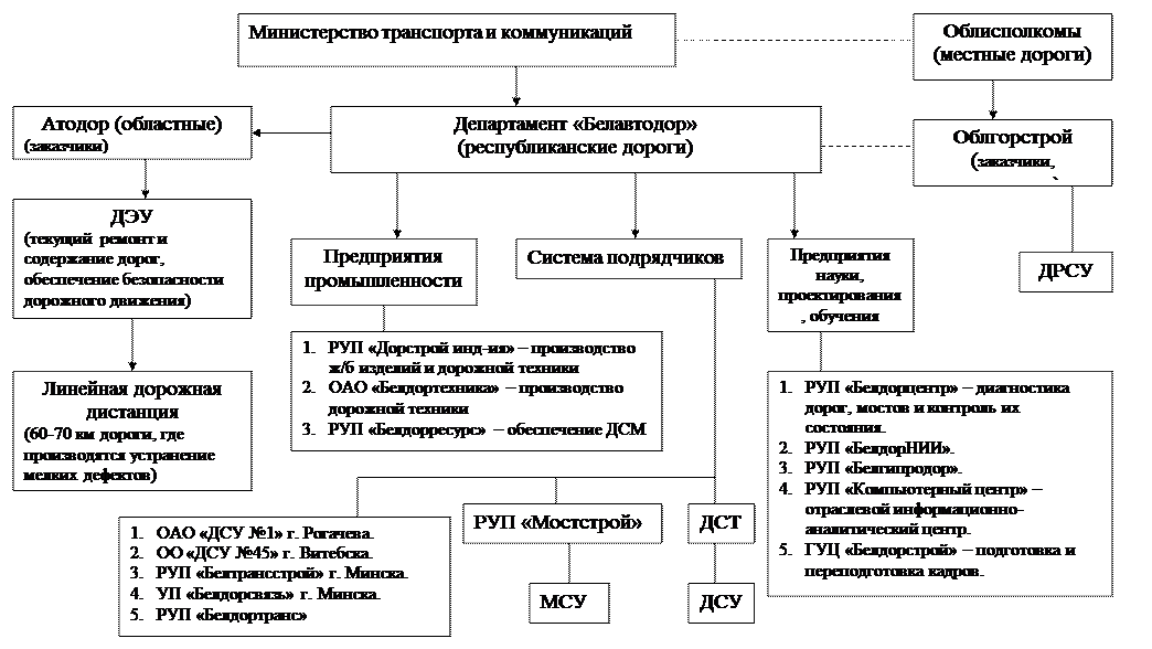В настоящее время во главе дорожной отрасли находится департамент «Белавтодор», который является подразделением Министерства транспорта и коммуникаций РБ.