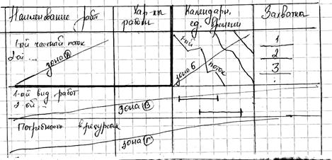 3. Для отображения многообъектных потоков – ленточный график, т.к. он не теряет наглядности при большом количестве видов работ и объектов.