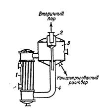 1-греющая камера, 2-брызголоуловитель, 3-сепаратор, 4-циркуляционная труба