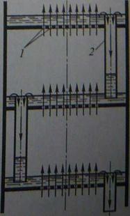 бам, а не через патрубки 2, верхние концы патрубков должны быть выше уровня жидкости. Нижние края колпачков погружены в жидкость так, чтобы уровень жидкости был выше верха прорезей.