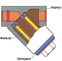 Сетчатые фильтры. Для более качественной очистки воздуха перед пневматическими и электропневматическими приборами, а также в начале разветвления магистралей от напорного трубопровода. В виде 2-ух латунных гильз, между которыми фильтрующий элемент из тонкошерстного войлока или фетра.