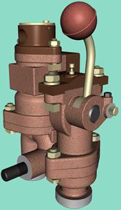 2. Проверка в депо. При 2-ом положении ручки крана машиниста отклонить скобу молотком, клапан должен сработать и не садиться, а после постановки ручки крана в 5(7) положение клапан должен закрыться при давлении в ТМ не более 1,8-2атм.