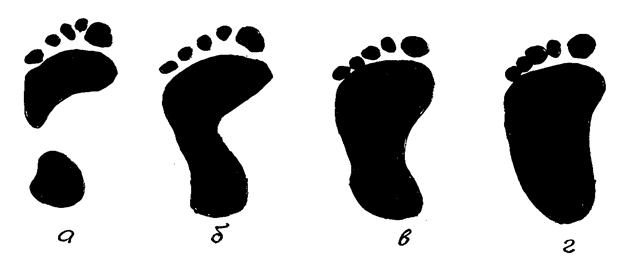 Форму стоп определяют путем наружного осмотра или посредством отпечатков стоп.