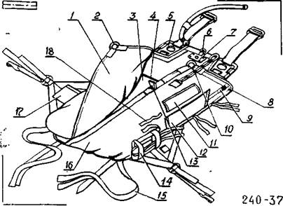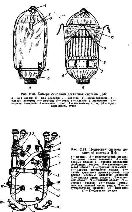 предназначена для удобного размещения в ней парашютиста и является соединительным звеном между парашютистом и куполом. Она обеспечивает равномерное распределение нагрузки на парашютиста.