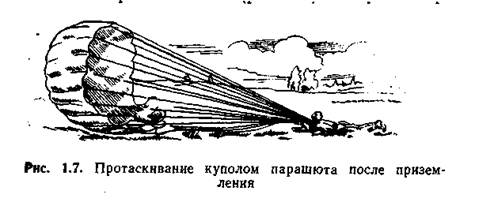 Таким образом, раскрытие парашюта занимает 2-3 сек и расстояние 60 -90 метров, инерционная нагрузка при раскрытии парашюта возникает в результате быстрой потери скорости и воспринимается как удар.