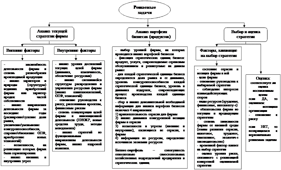 В процессе формирования и выбора конкретной стратегии полезными инструментами являются матричные методы, включая: