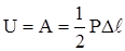 Потенциальной энергией деформации называется энергия, которая накапливается в теле при его упругой деформации. При этом точка приложения внешней силы перемещается, потенциальная энергия положения груза убывает на величину, которая численно равна работе, совершённой внешней силой. Таким образом, потенциальная энергия упругой деформации U равна работе внешней силы А. Найдём величину А (рис.2.28).