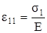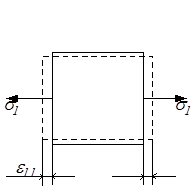 где ε11 – относительное удлинение в направлении σ1, вызванное действием только σ1 (рис. 3.13,б);