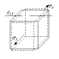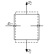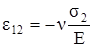 ε12 – удлинение в том же направлении, вызванное действием только σ2 (рис. 3.13,в);