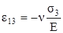 ε13 – удлинение в том же направлении, вызванное действием только σ3 (рис. 3.13,г).