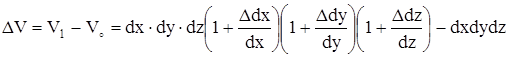 ∆V = V0 ∙ (1 + ε1 + ε2 + ε3 + ε1ε2 + ε2ε3 + ε1ε3 + ε1ε2ε3) – V0.