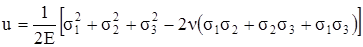 Как отмечалось выше (см. п. 2.8), в процессе упругой деформации в теле накапливается потенциальная энергия, равная работе внешних сил. При осевом растяжении (линейном напряжённом состоянии) удельная потенциальная энергия (т.е. энергия, приходящаяся на единицу объёма) определяется по формуле (2.37)