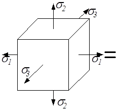 σ1 + σ2 + σ3 = 3σокт = 3σср.