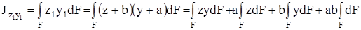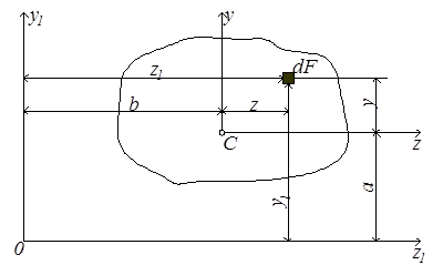 Дано: моменты инерции фигуры относительно осей z, y; расстояния между этими и параллельными осями z1, y1 – a, b.