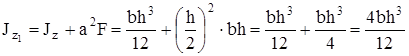 Пример: определить осевой момент инерции прямоугольника относительно оси z1, проходящей через основание (рис.4.6,а). По формуле (4.14)