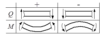 Необходимо отметить, что правило знаков для Q и M не совпадает с правилом знаков для уравнений статики.