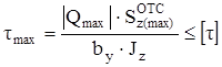 Проверку прочности по касательным напряжениям по формуле (5.40) необходимо делать только для балок из тонкостенных профилей.