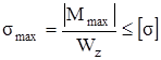 Практика применения и расчёта балок показала, что в подавляющем большинстве случаев опасной является крайняя точка того сечения, где M = Mmax. Подбор сечения балки всегда необходимо производить из условия прочности по нормальным напряжениям (5.20).