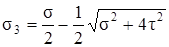 Что касается третьей точки, то положение её не столь определённо. Но где бы она ни была выбрана, в ней будет плоское напряжённое состояние (элементы 4 или 5), при котором главные напряжения рассчитывают по формулам (3.18). В нашем случае σх = σ, σу = 0, τху = τ и поэтому главные напряжения рассчитываются по формулам (3.18)