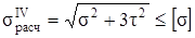 Внося эти величины в выражения для расчётных напряжений по III-й (наибольших касательных напряжений) и IV-й (энергетической) теориям прочности (3.49) и (3.52), получаем условия прочности