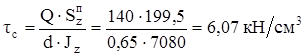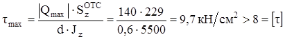 2. Проверим прочность по касательным напряжениям по формуле (5.40):