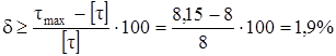 Прочность не обеспечена, т.к. перенапряжение превышает 5%: