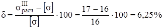 Хотя напряжения превышают величину допускаемых, прочность можно считать обеспеченной, т.к. превышение менее 5%: