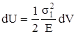 Найдем потенциальную энергию в элементарном объёме dV балки: