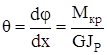 Величина dφ/dx является относительным (погонным) углом закручивания, имеет размерность см-1 и обычно обозначается через θ. Учитывая это, формулу (7.4) можно переписать так: