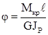 где GJр – жёсткость стержня при кручении, Jр – полярный момент инерции.