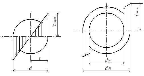 где τ – допускаемое напряжение при кручении (чистом сдвиге).