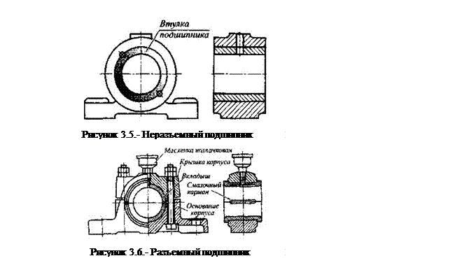 Существует много конструкций подшипников скольжения, которые подразделяются на два вида: неразъёмные и разъёмные.