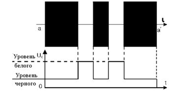 Из этого рисунка следует: при передаче черных полос величина сигнала равна уровню черного; при передаче белых полос – уровню белого.