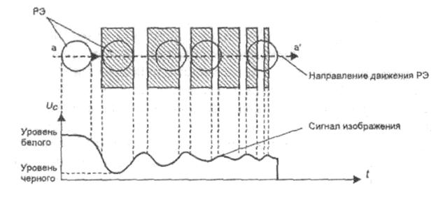 Однако апертура реальных РЭ имеет конечные размеры, что приводит к размытию крутых фронтов видеосигнала и уменьшению размаха этого сигнала от мелких деталей (деталей, размеры которых соизмеримы с размерами РЭ, рис. 1.8).